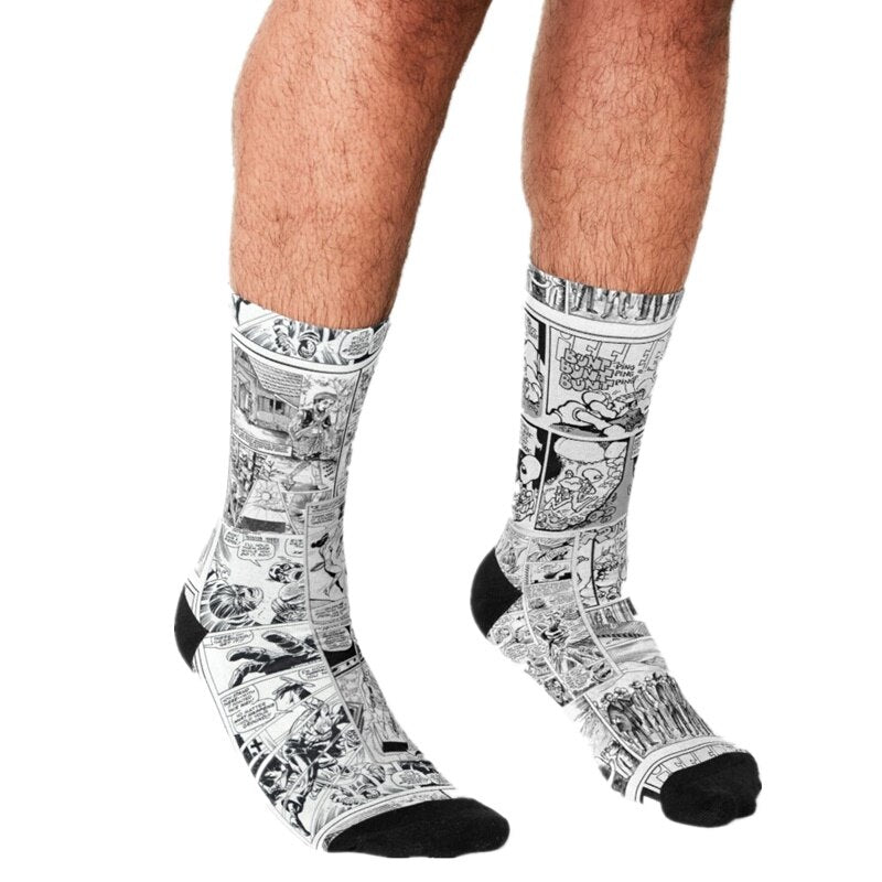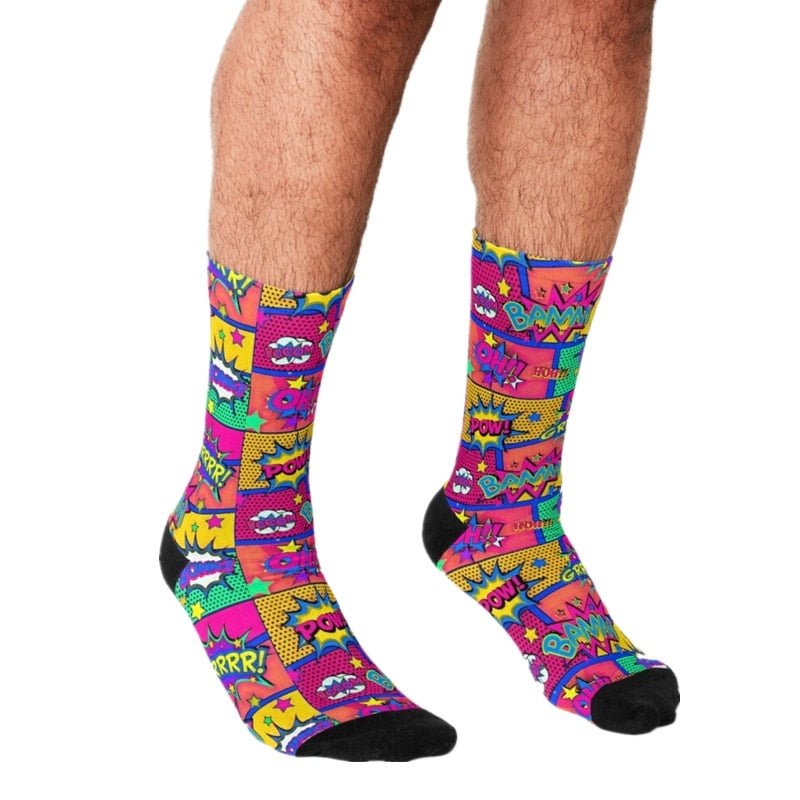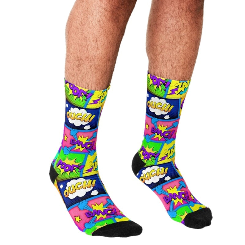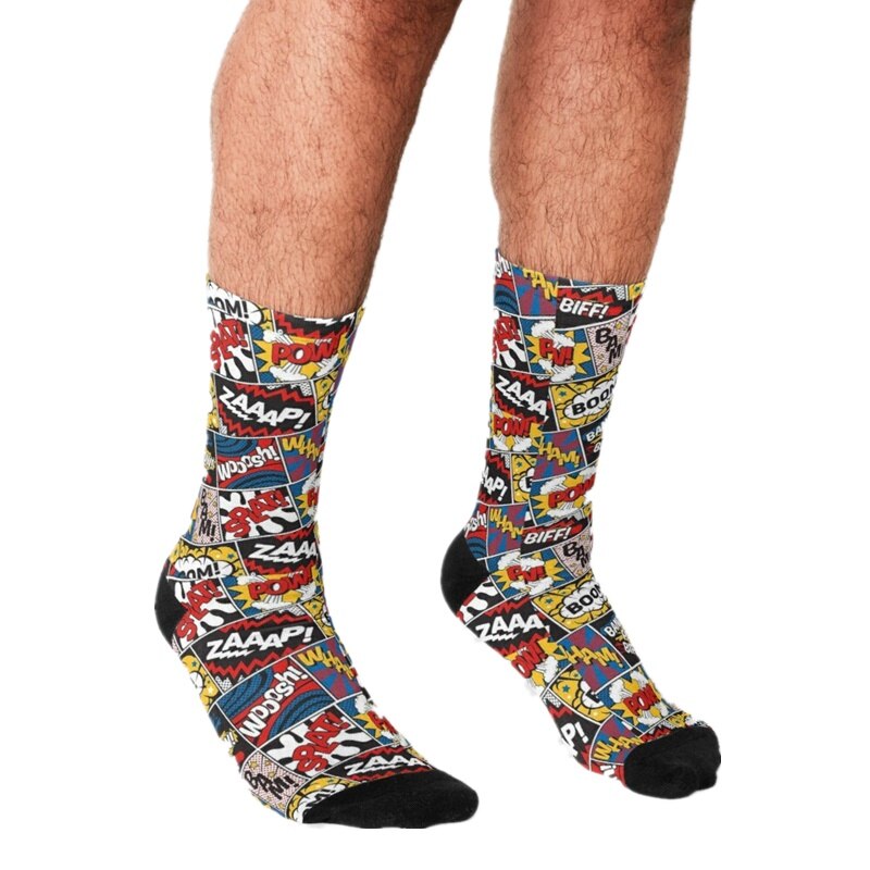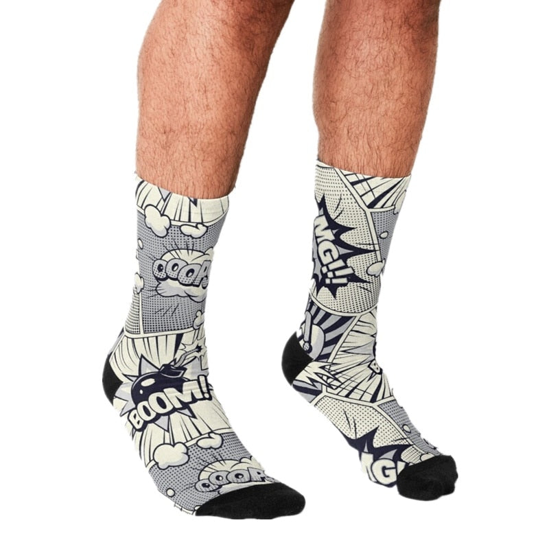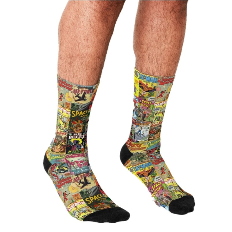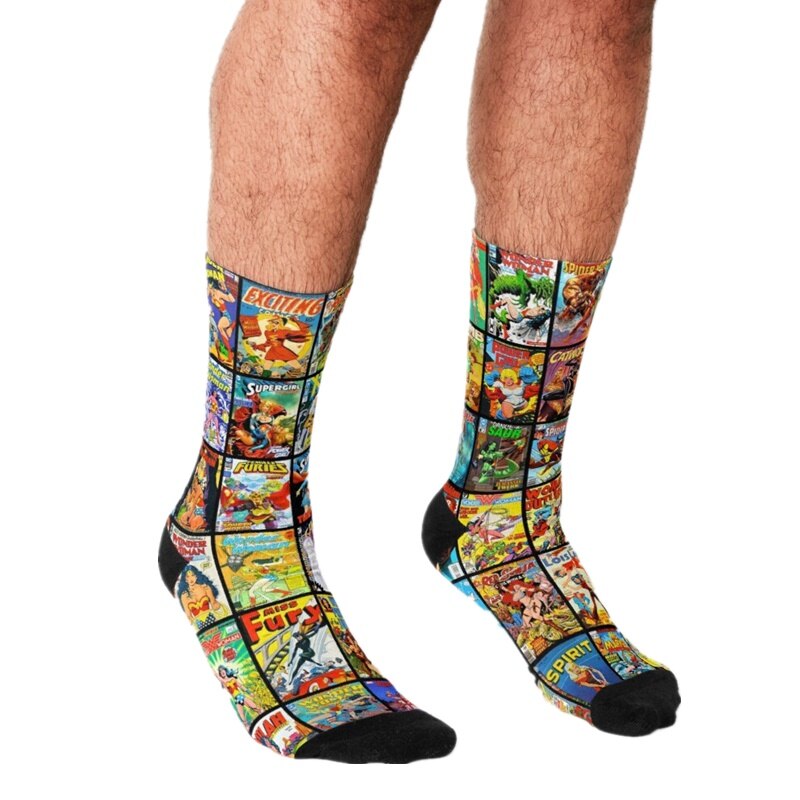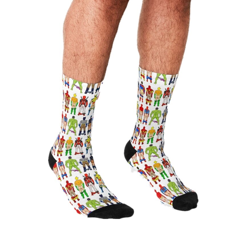 Funny Men's socks comic book super heroes pattern Printed hip hop Men Happy Socks cute boys street style Crazy Socks for men
